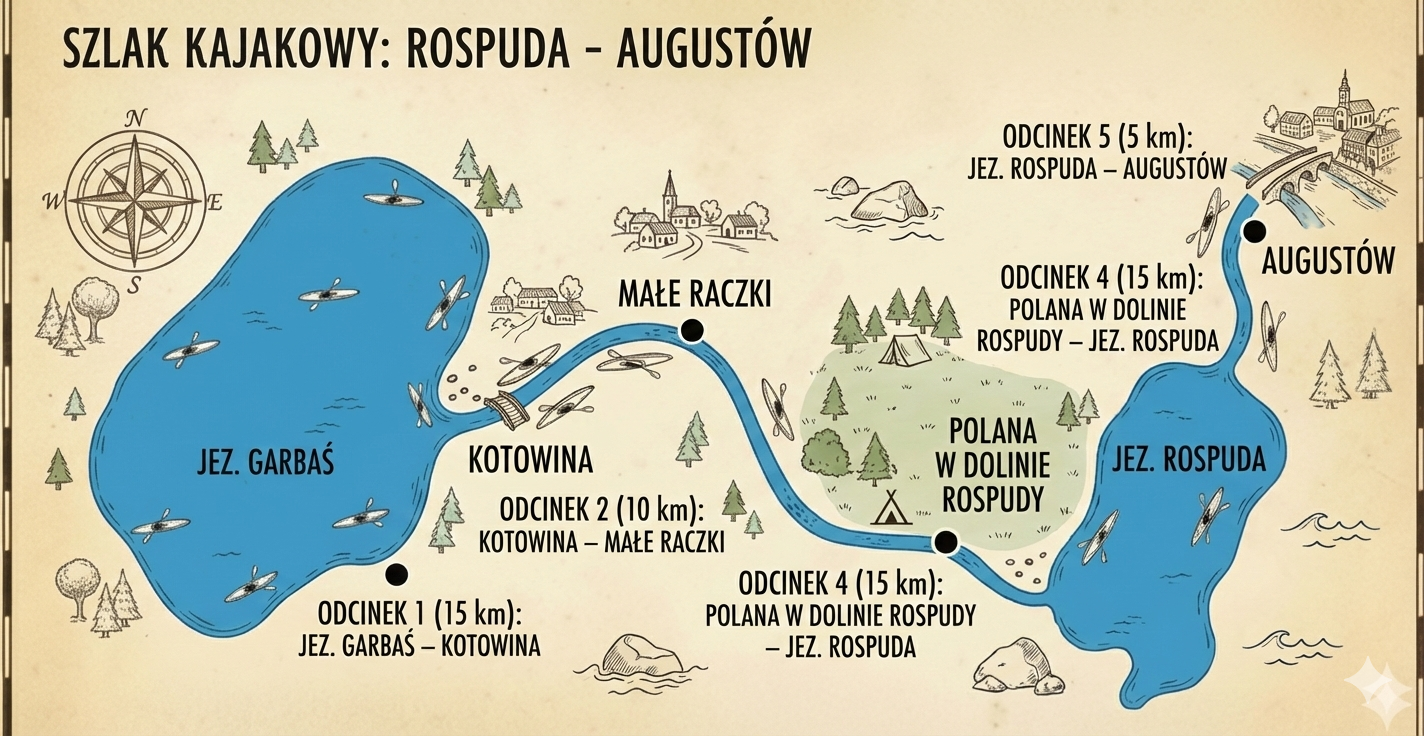 Spływy kajakowe Rospuda, Kajaki Suwlaszczyzna, Spływy kajakowe Podlasie, Spływ Czarną Hańczą, Rospuda mapa, spływ Rospudą